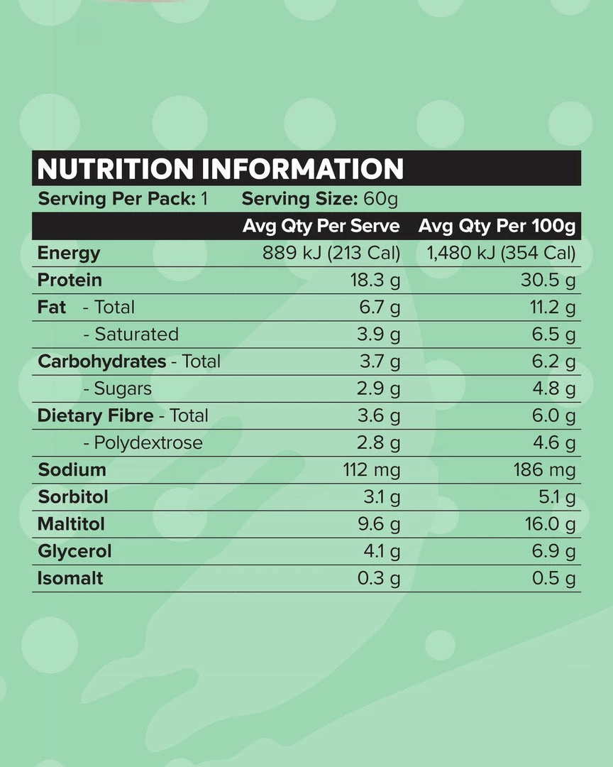 A mouth-watering protein bar featuring a smooth choc mint custard layer, sprinkled with crunchy nibbles and coated in a lush layer of chocolate. It’s the ultimate protein packed snack made with our renowned Custard Protein to keep you feeling fuller for longer.