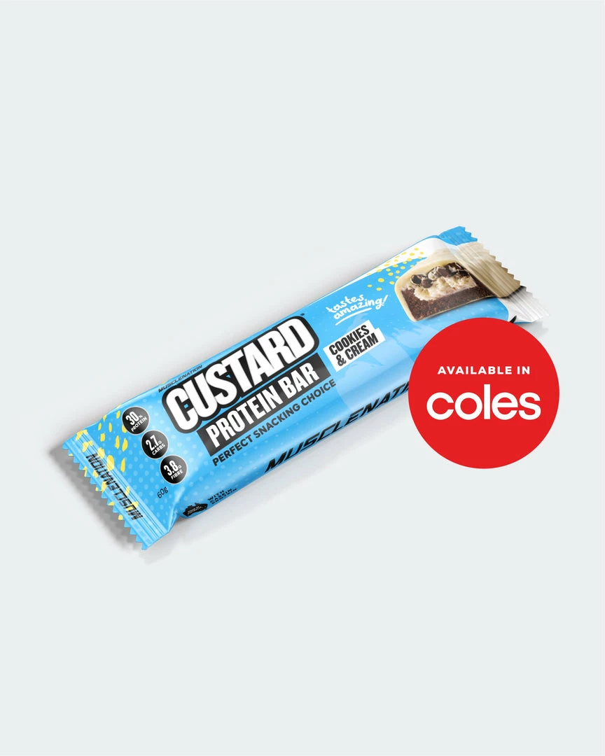 A mouth-watering protein bar featuring a smooth cookies & cream custard layer, sprinkled with crunchy cookie nibbles and coated in a lush layer of white chocolate. It’s the ultimate protein packed snack made with our renowned Custard Protein to keep you feeling fuller for longer.