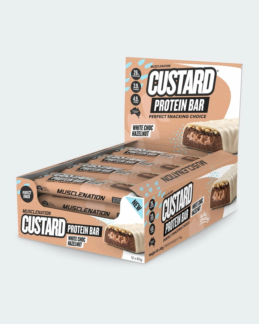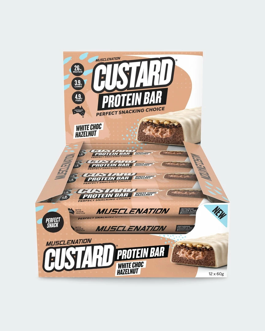 Delicious White Choc Hazelnut Custard filled Protein Bar.