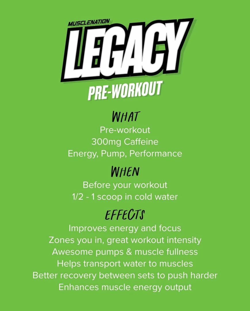 When you’re looking for a push, Legacy is our customers favourite. With 300mg of caffeine per serve, Beta Alanine, L-Citrulline, Agmatine and much more, all you need is 1 scoop for a supercharged session.