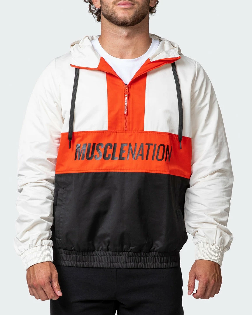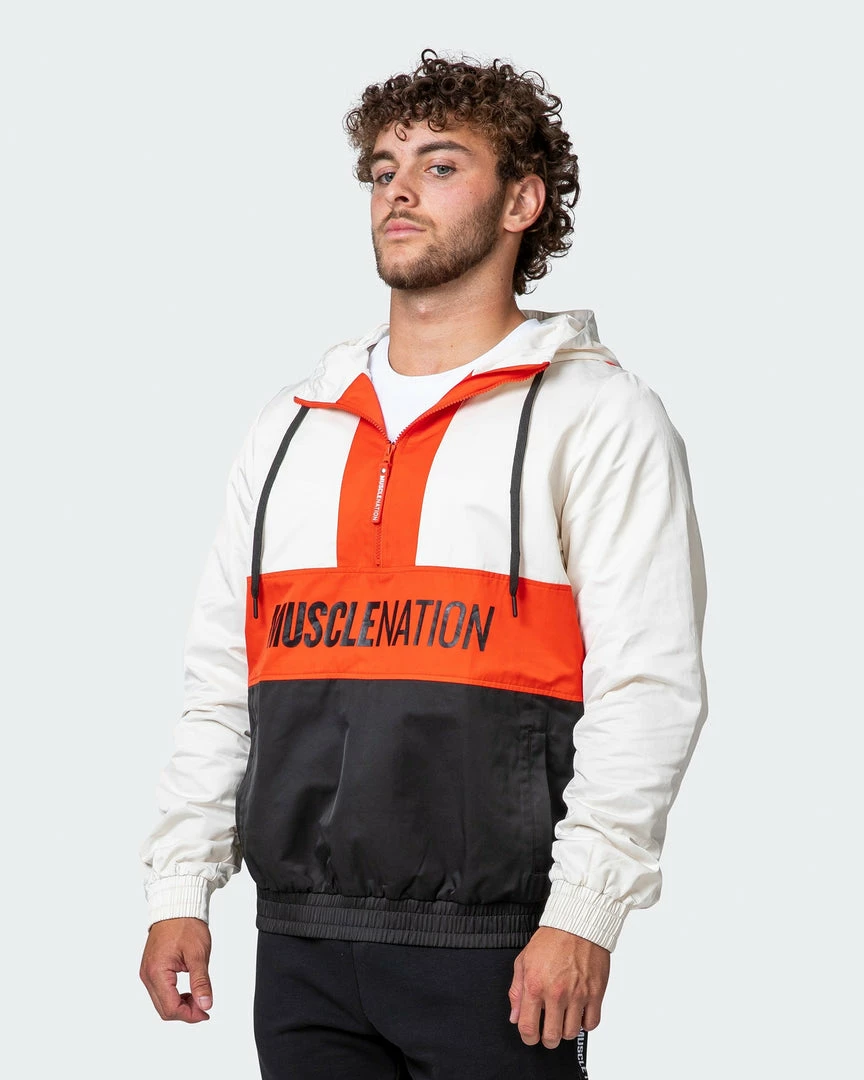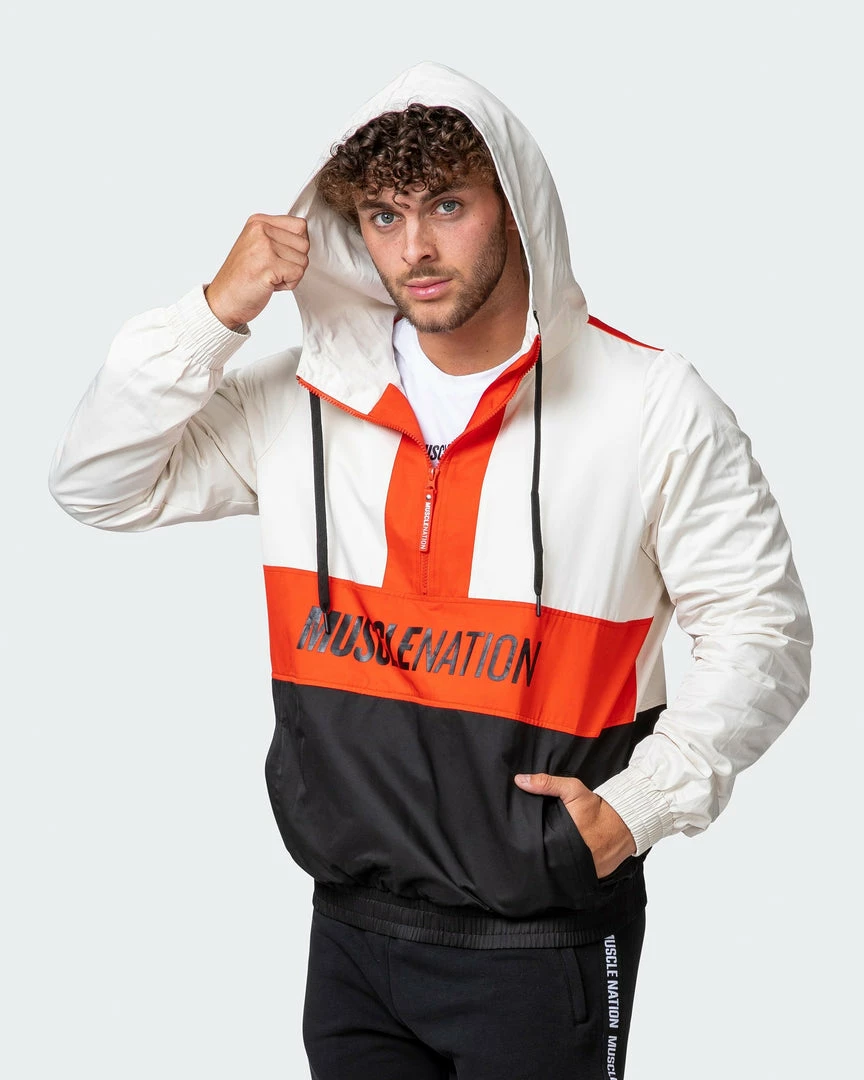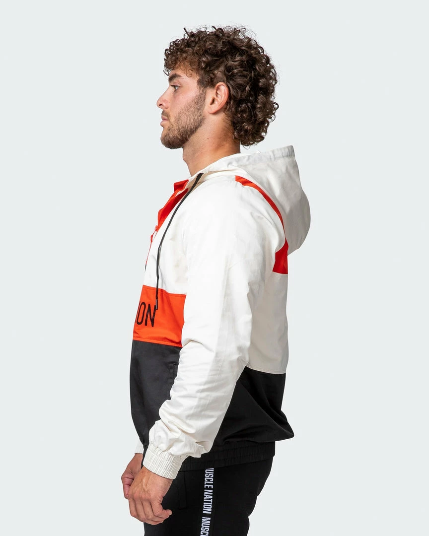 This windbreaker style jacket features a drawcord adjustable hood, front zippers into a pocket and comfortable encased elastic cuffs and waist hem