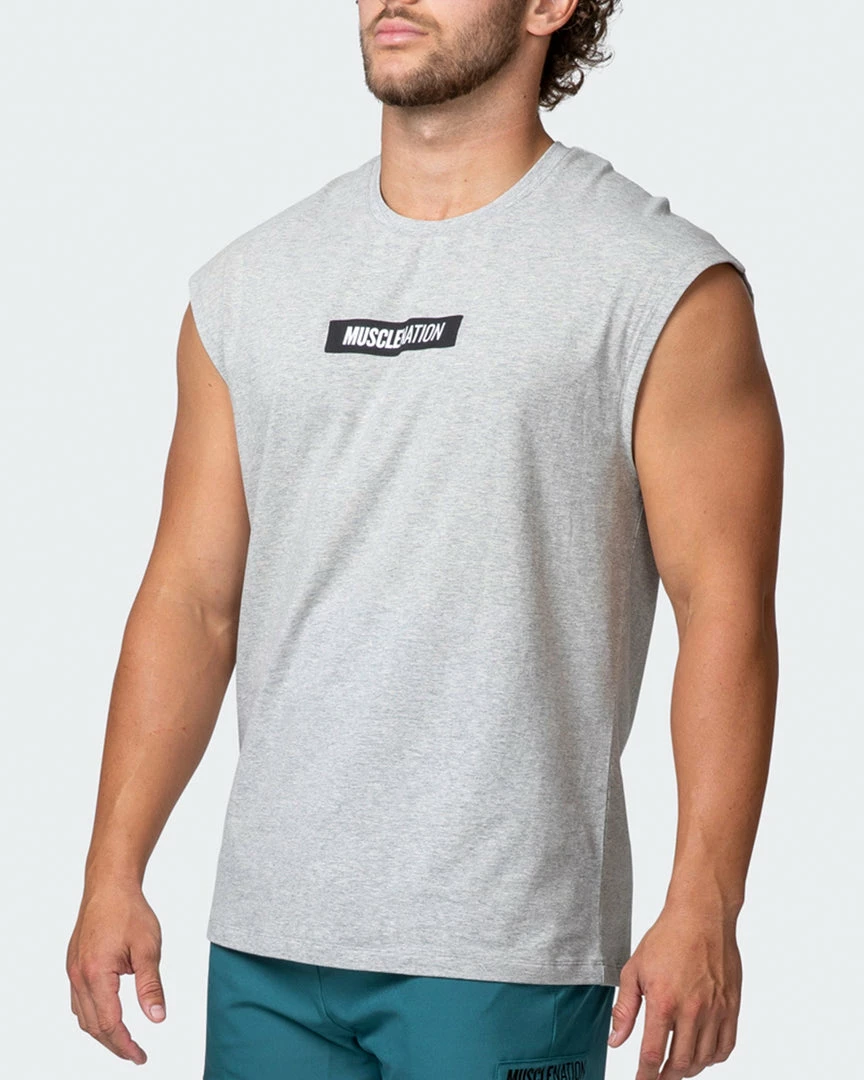 Muscle Nation 30% EOFY SALE Sleeveless Tee – Light Grey Marl