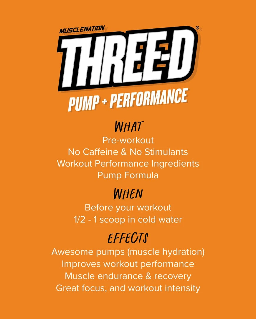 If you are sensitive to caffeine but still want all the benefits of a pre-workout (minus the caffeine), then Three-D is for you. Three-D is packed with all the goodies like Citrulline, Glycerol, Agmatine and more.