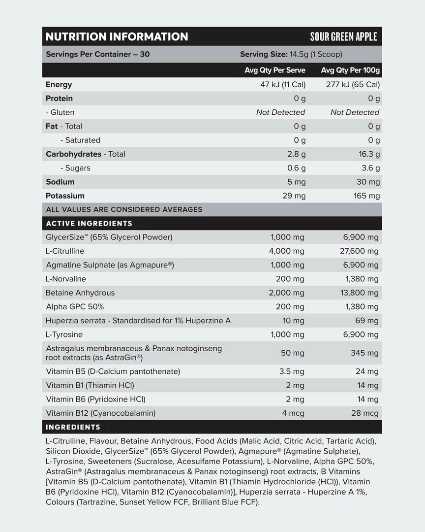 If you are sensitive to caffeine but still want all the benefits of a pre-workout (minus the caffeine), then Three-D is for you. Three-D is packed with all the goodies like Citrulline, Glycerol, Agmatine and more.