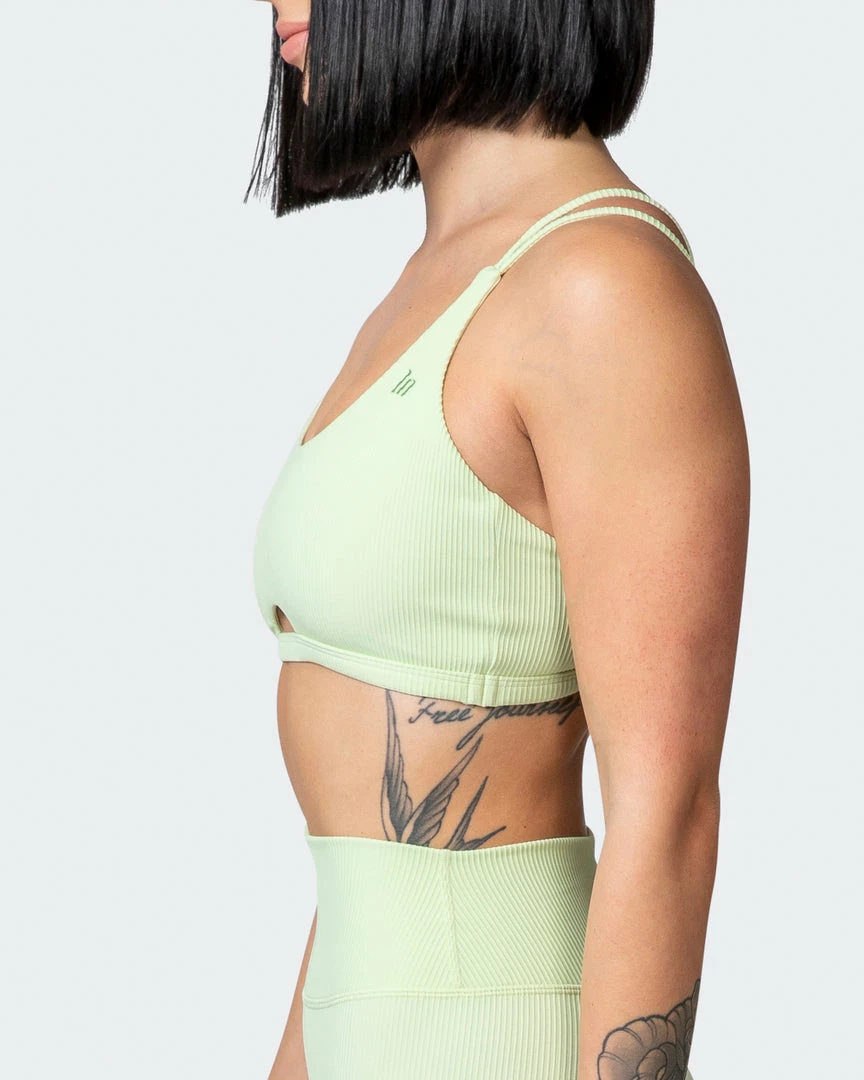 The All Day Rib Bralette features a simple over the shoulder, dual back strap design with a cute keyhole cutout on the front.