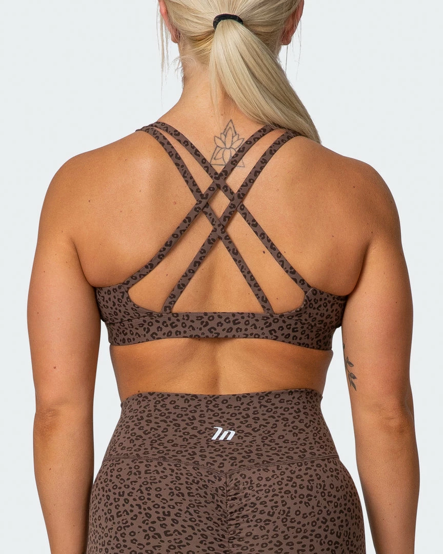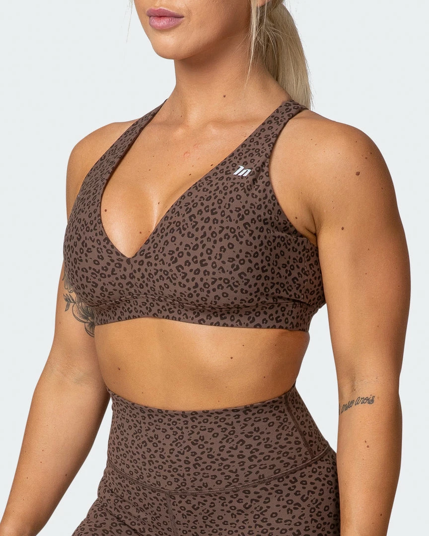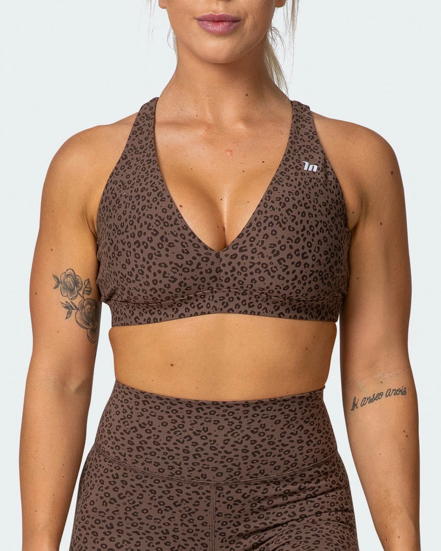 • Muscle Nation Welcome To The Club All-Star Deep V Bra - Brown Sugar Mini Cheetah Print