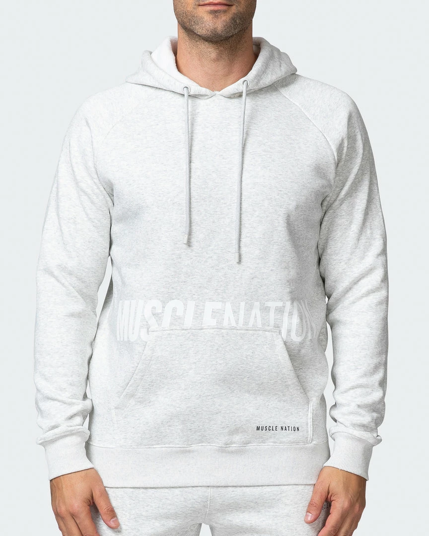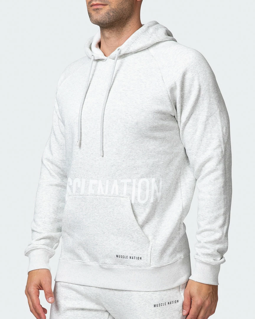 Crafted from soft fabric to keep you warm in the cooler months. Other notable features include a hood with drawcords, ribbed cuffs and hem band and dual Muscle Nation prints on the front.