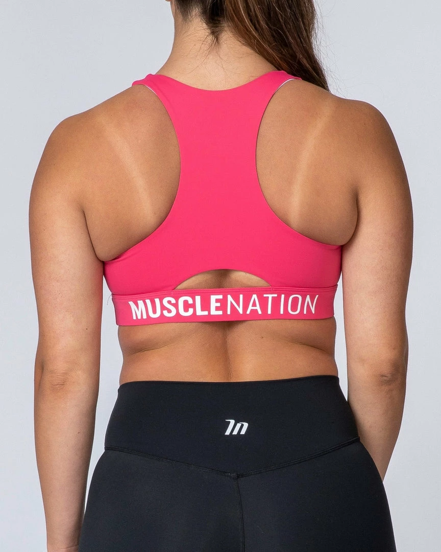 Details include high-shine silicone Muscle Nation branding on the back waistband in a pop of white and removable padding.