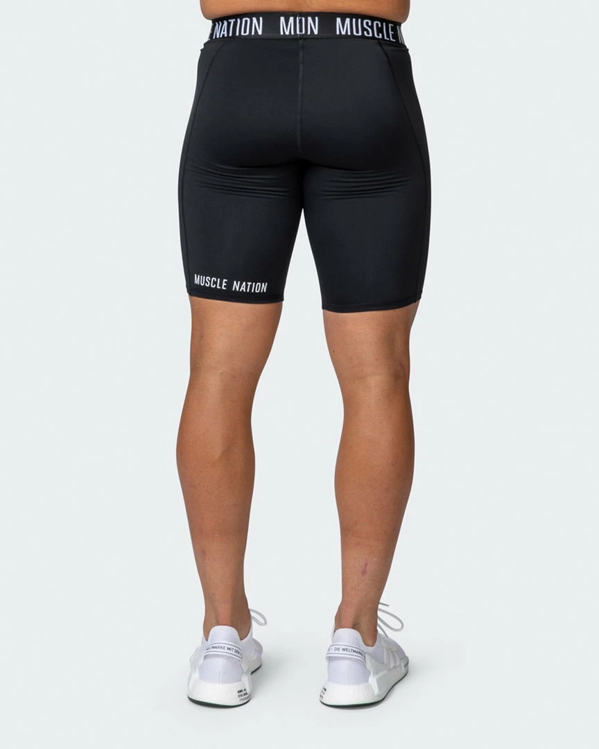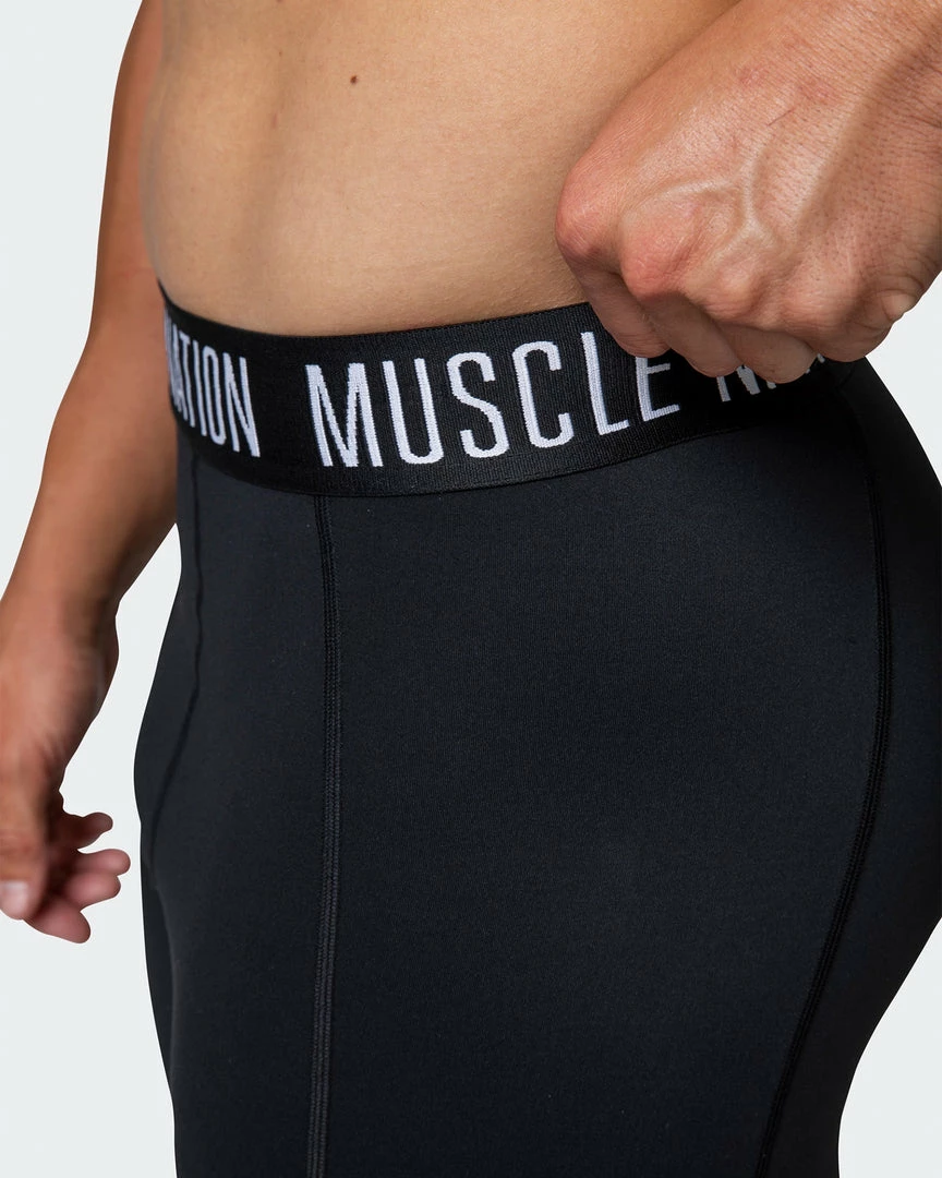 Features include bold Muscle Nation branding on the elasticated waistband and panel seams for a more comfortable fit.