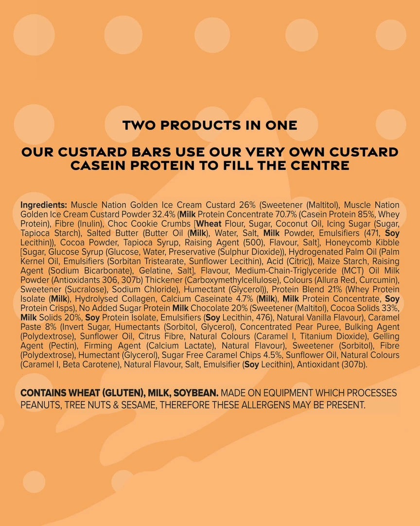 A mouth watering protein bar featuring a smooth caramel custard layer with an extra layer of gooey caramel, sprinkled with crunchy caramel candy and coated in a lush layer of chocolate. It’s the ultimate protein packed snack made with our renowned Custard Protein to keep you feeling fuller for longer.