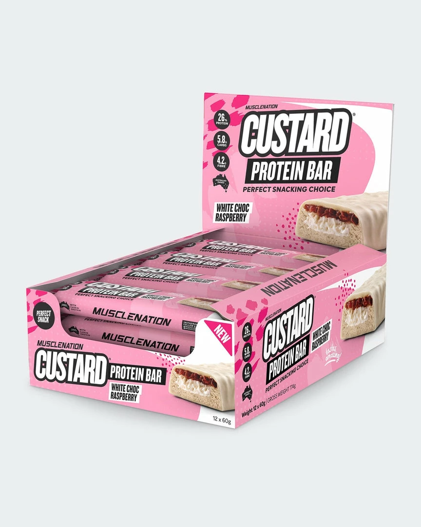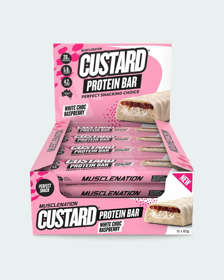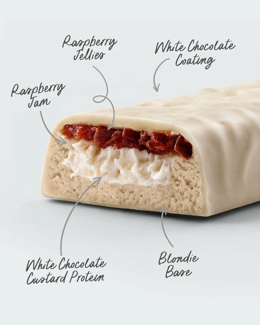 Delicious White Choc Raspberry Custard filled Protein Bar.