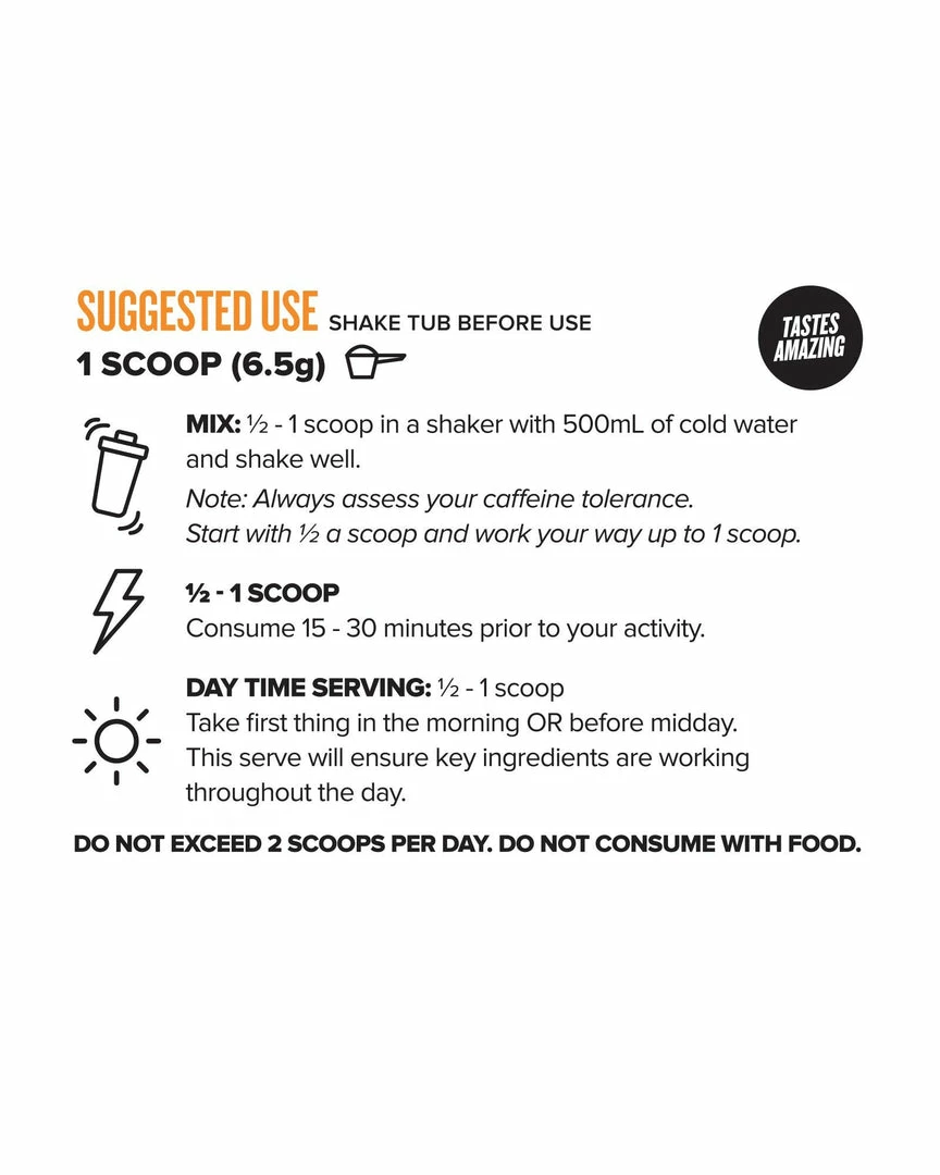 Destiny has the perfect amount of caffeine (150mg per serve), to help kick start your morning, pick-me-up during the day and before any activity (cardio, workout etc). Destiny tastes amazing, and is a customer favourite.