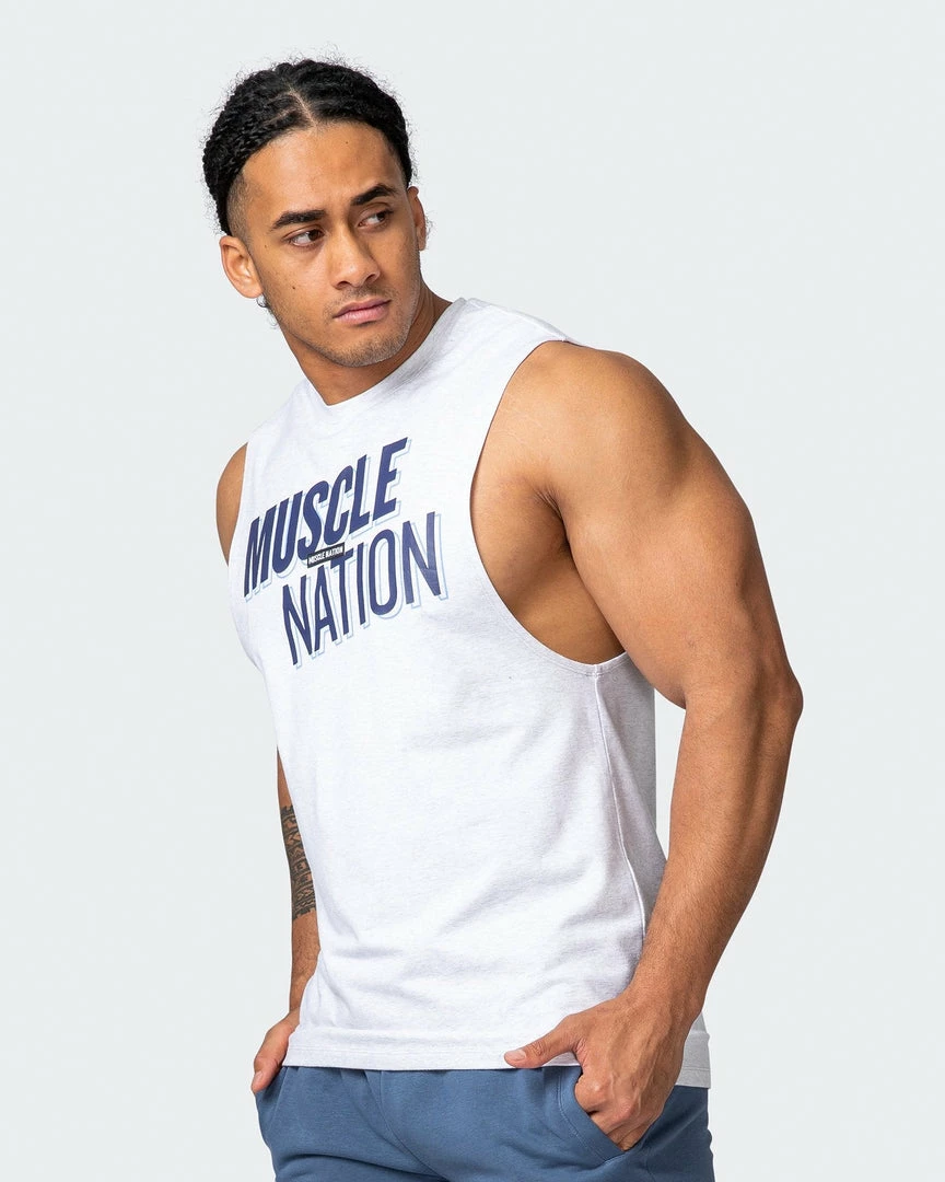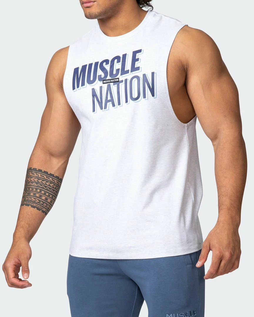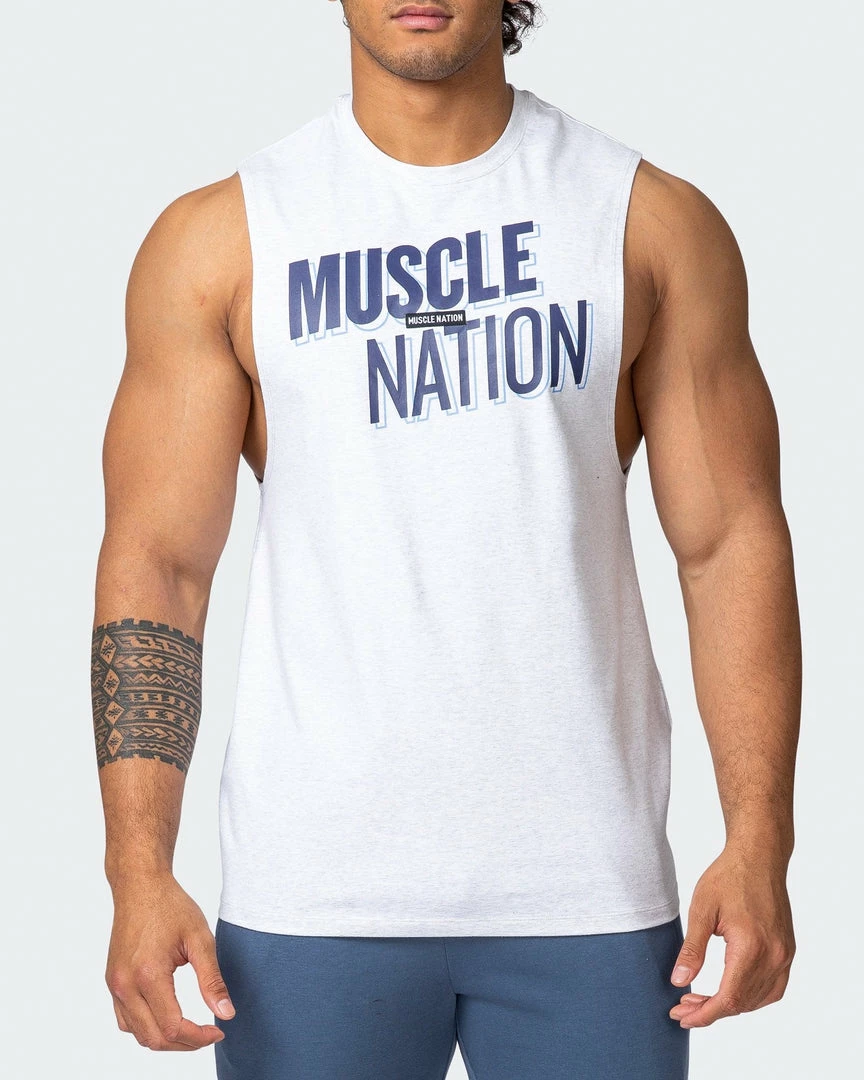 – Angled duo-colour Muscle Nation printed logo with our woven label on top