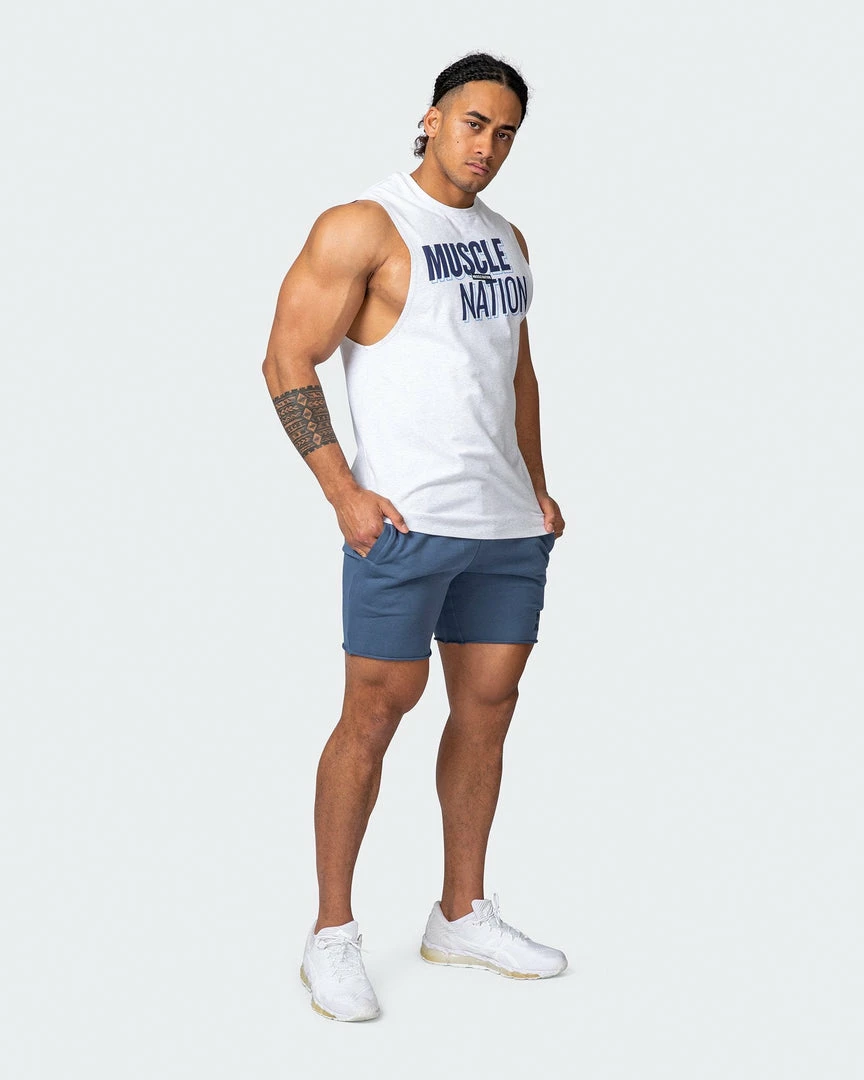 Branded with an angled, duo-colour Muscle Nation printed logo with our woven label on top.