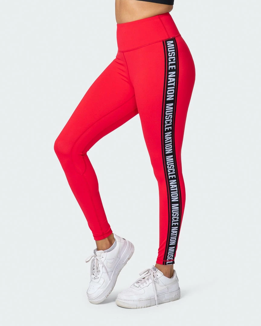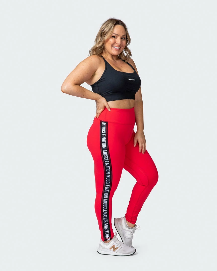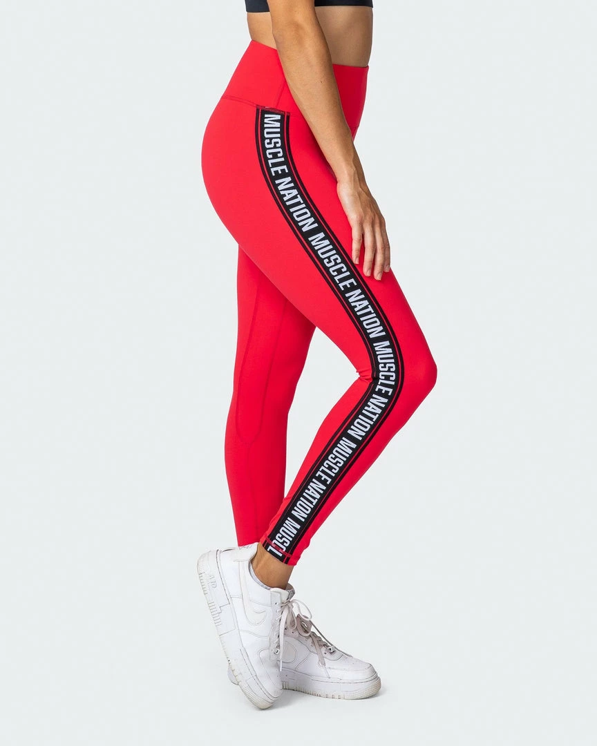 Finished with Muscle Nation branded elastic down the side legs to complete the look.Â