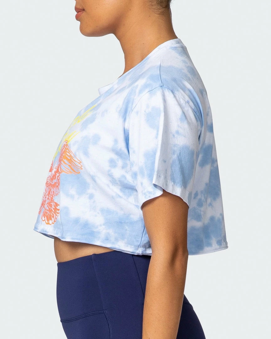 Our Womens Neon Eagle Tie Dye Cropped Tee will transition you from the gym to the streets.