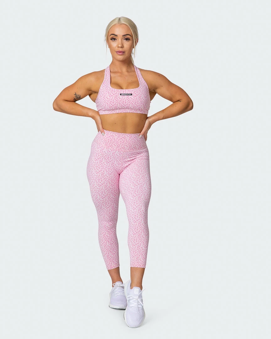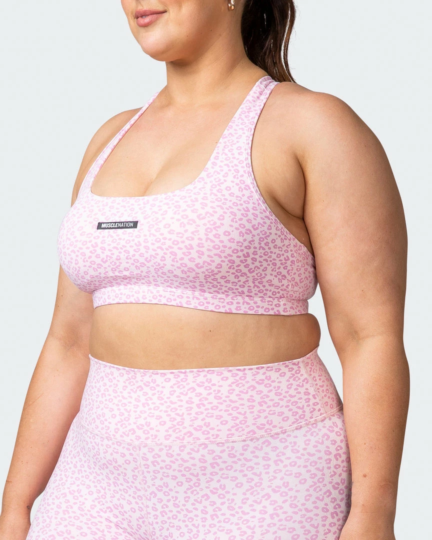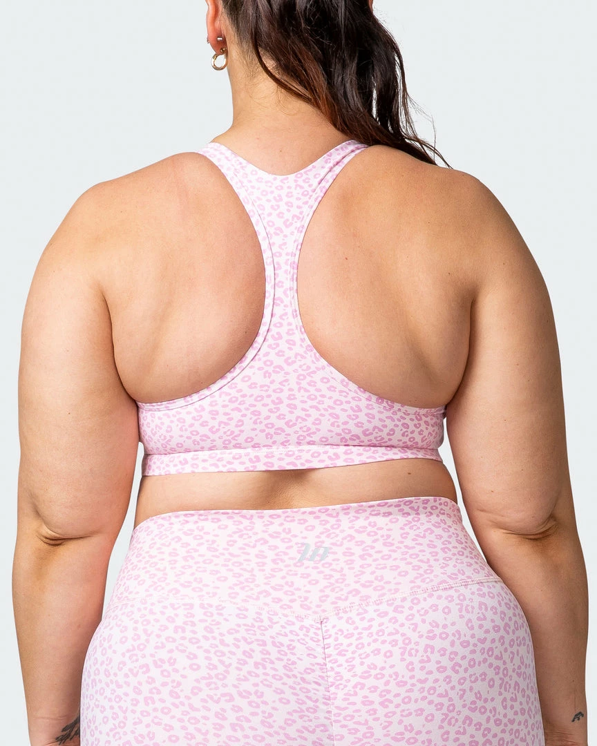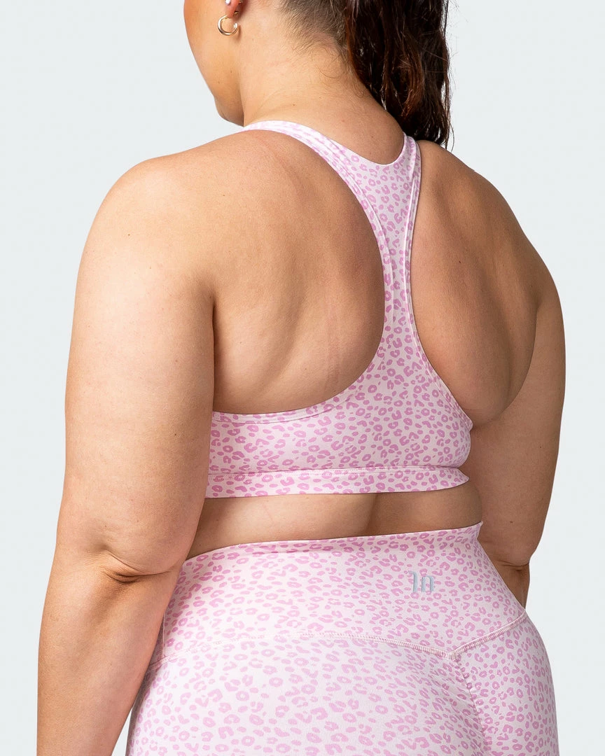Notable features of the Flex Bra include a narrow racer back design, subtle square neckline and encased elastic waistband.