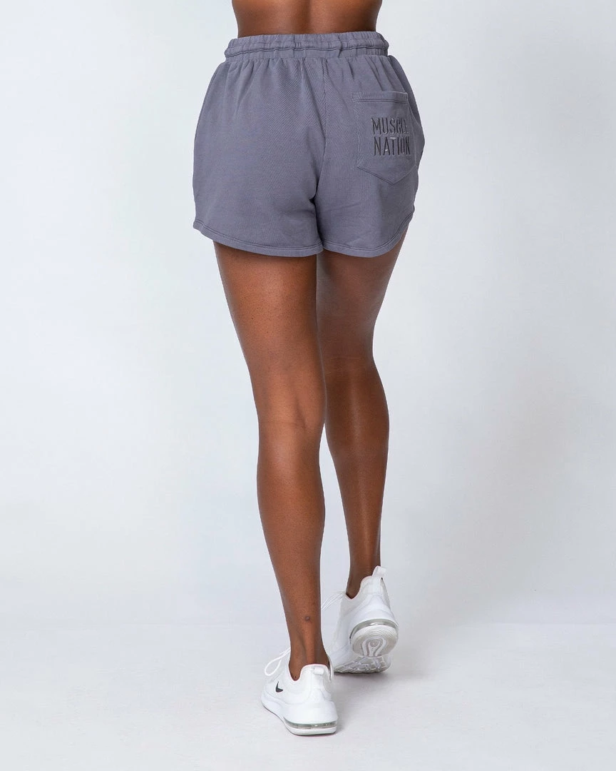 Finished in a fashion-forward acid wash for a vintage look. Branded with a tonal Muscle Nation embroidered logo on the rear pocket.