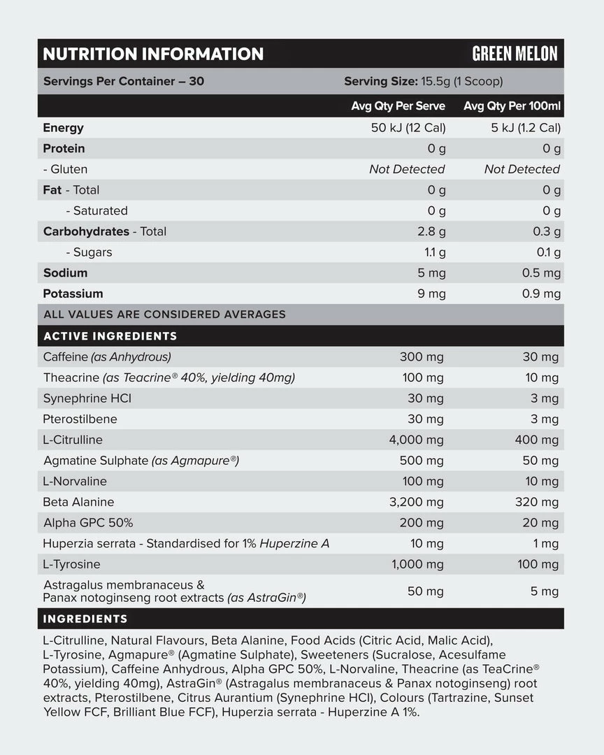 When you’re looking for a push, Legacy is our customers favourite. With 300mg of caffeine per serve, Beta Alanine, L-Citrulline, Agmatine and much more, all you need is 1 scoop for a supercharged session.