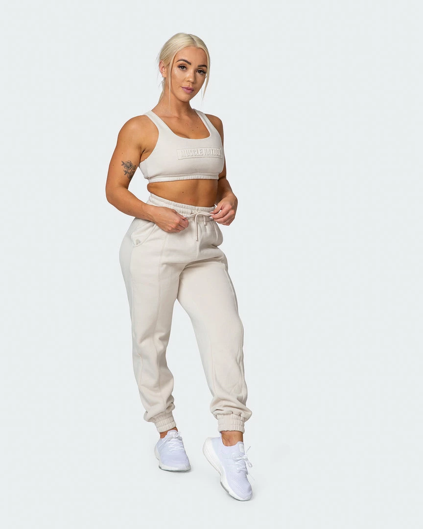 Finished with a bold embossed Muscle Nation logo on the front. Perfectly paired with the Womens Lounge Trackpants and your favourite pair of slides.Â