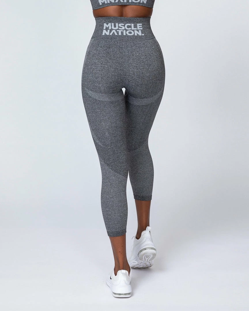 Details include a high ribbed waistband for support. Finished with bold Muscle Nation contrast branding on the back waistband.