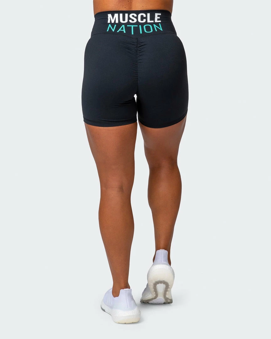 Branded with our duo colour, Muscle Nation high-shine silicone logo on the back waistband.