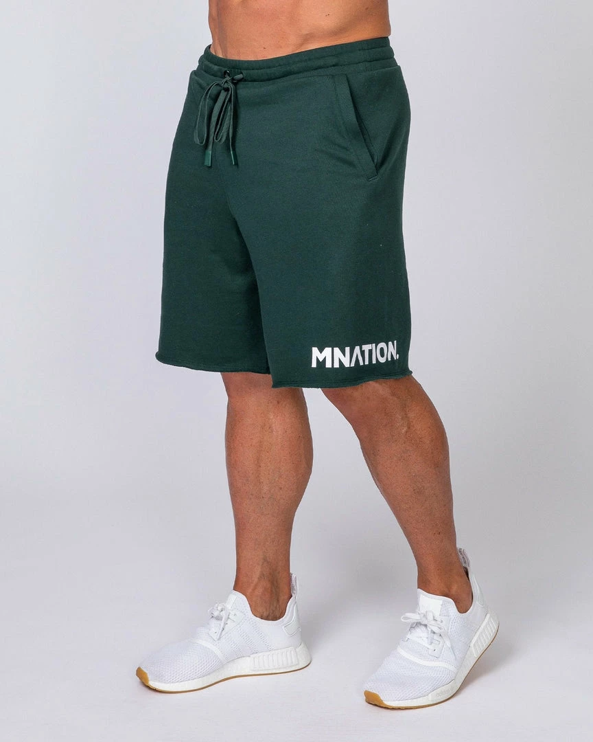 Finished with raw-cut hems, a practical rear pocket and MNation logo hem detailing.