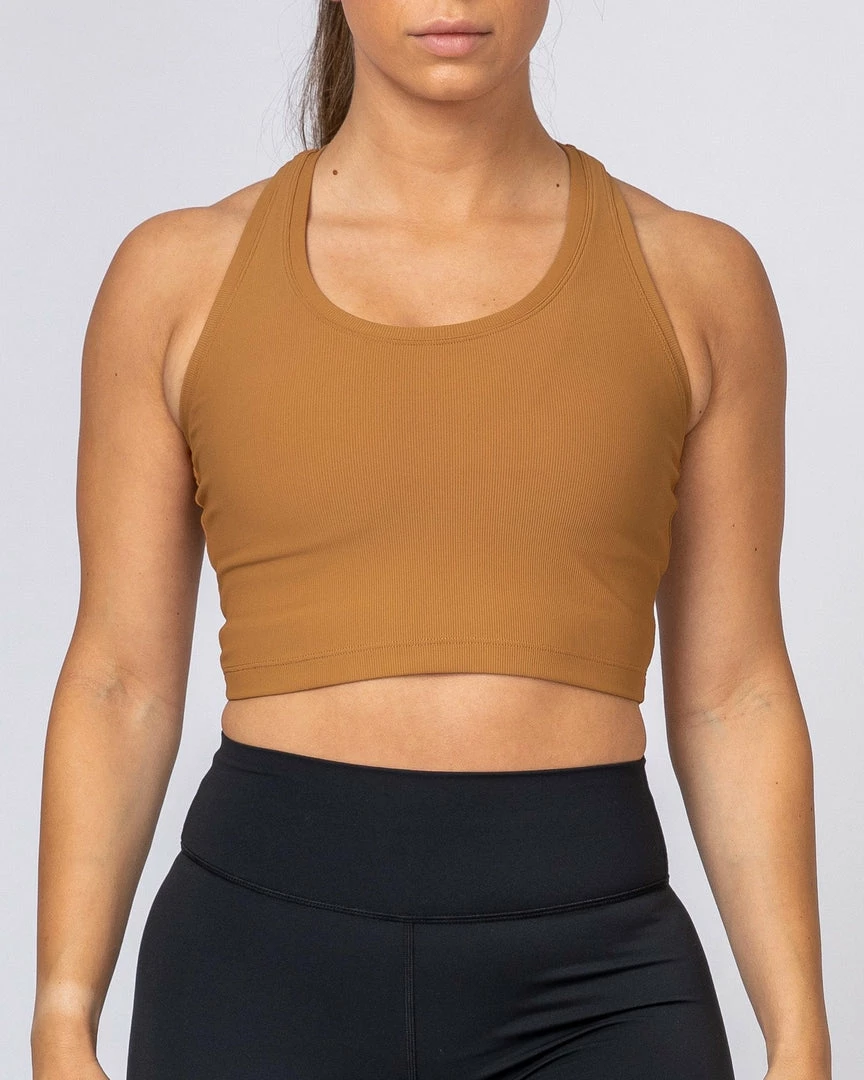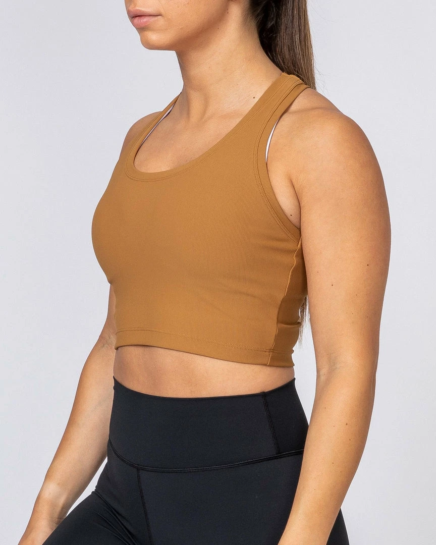 Muscle Nation Ribbed Cropped Tank – Latte Womens
