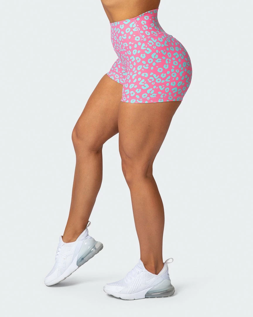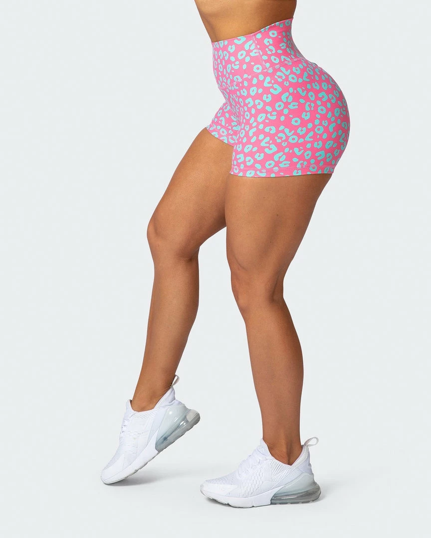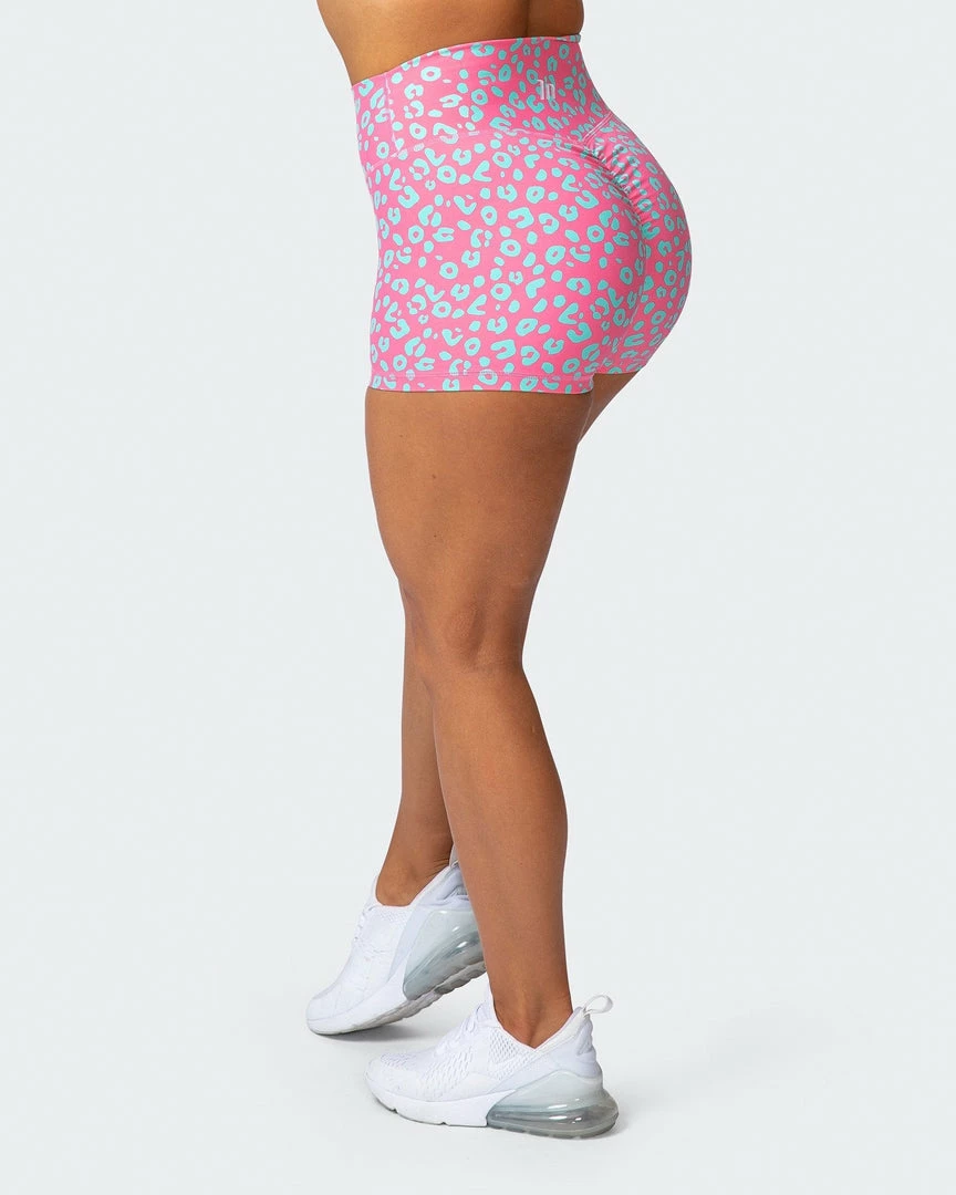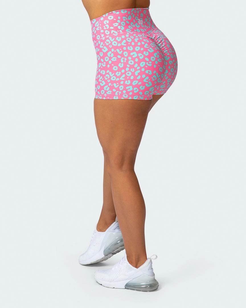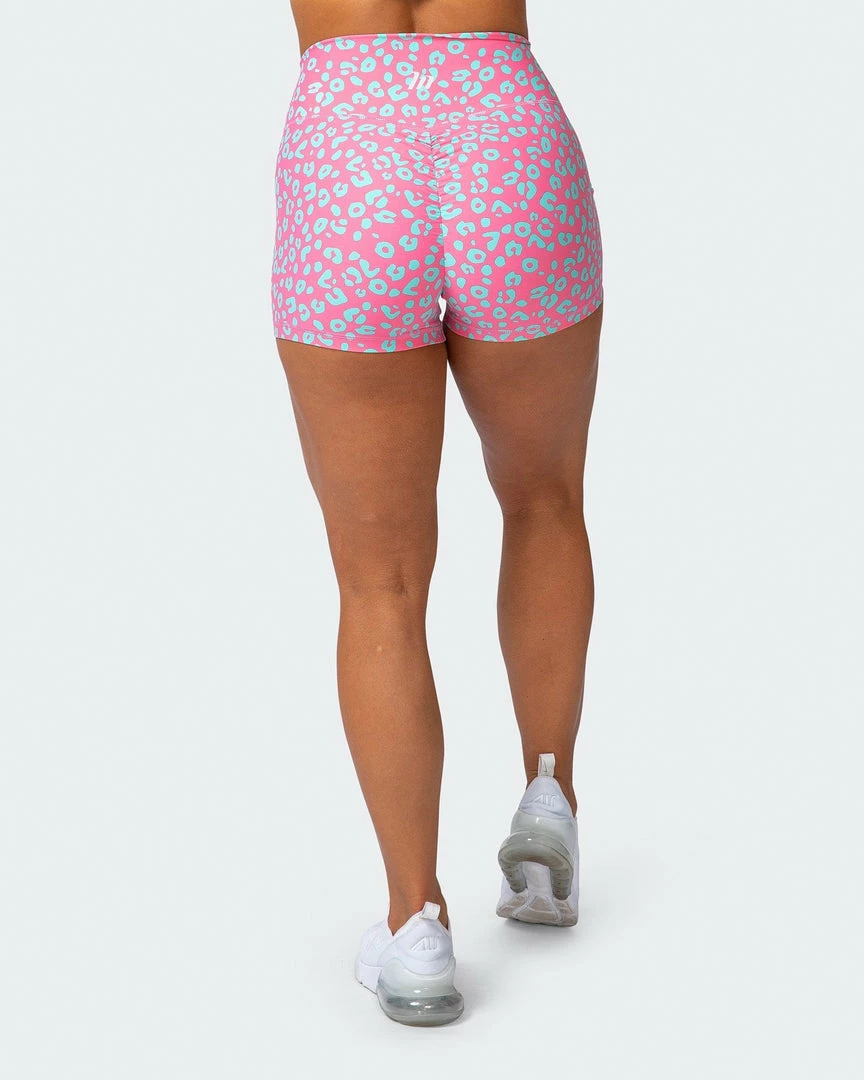 Muscle Nation Scrunch Bum Signature Scrunch Booty Shorts - Cotton Candy Cheetah Print