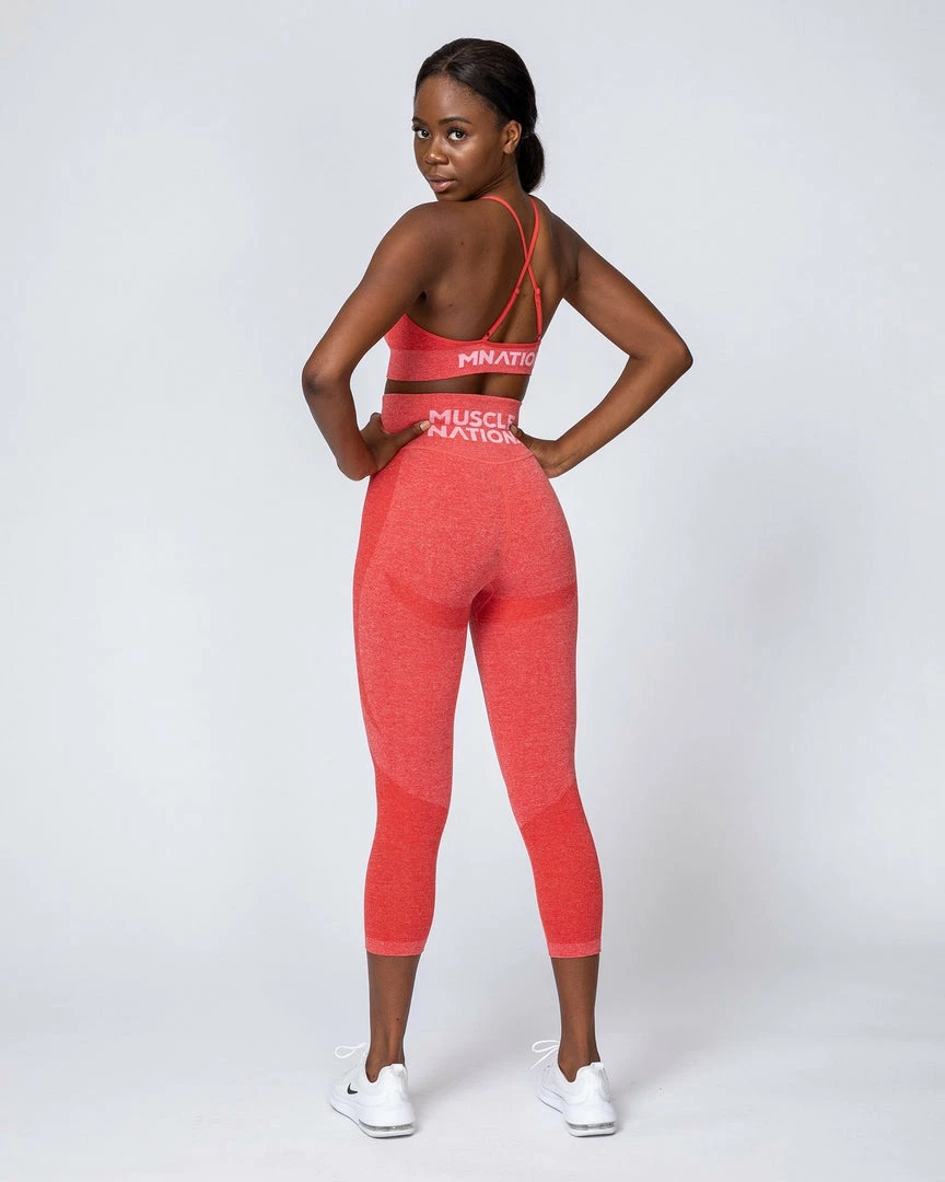 Details include a high ribbed waistband for support. Finished with bold, contrast Muscle Nation branding on the back waistband.