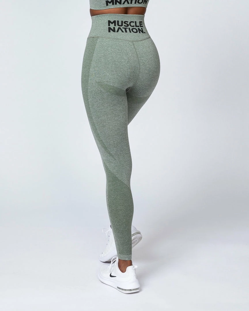 Details include a high ribbed waistband for support. Finished with bold, contrast Muscle Nation branding on the back waistband.