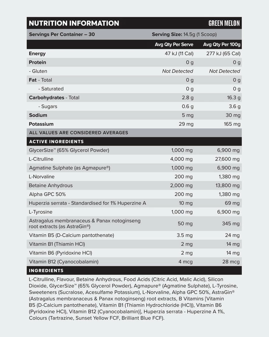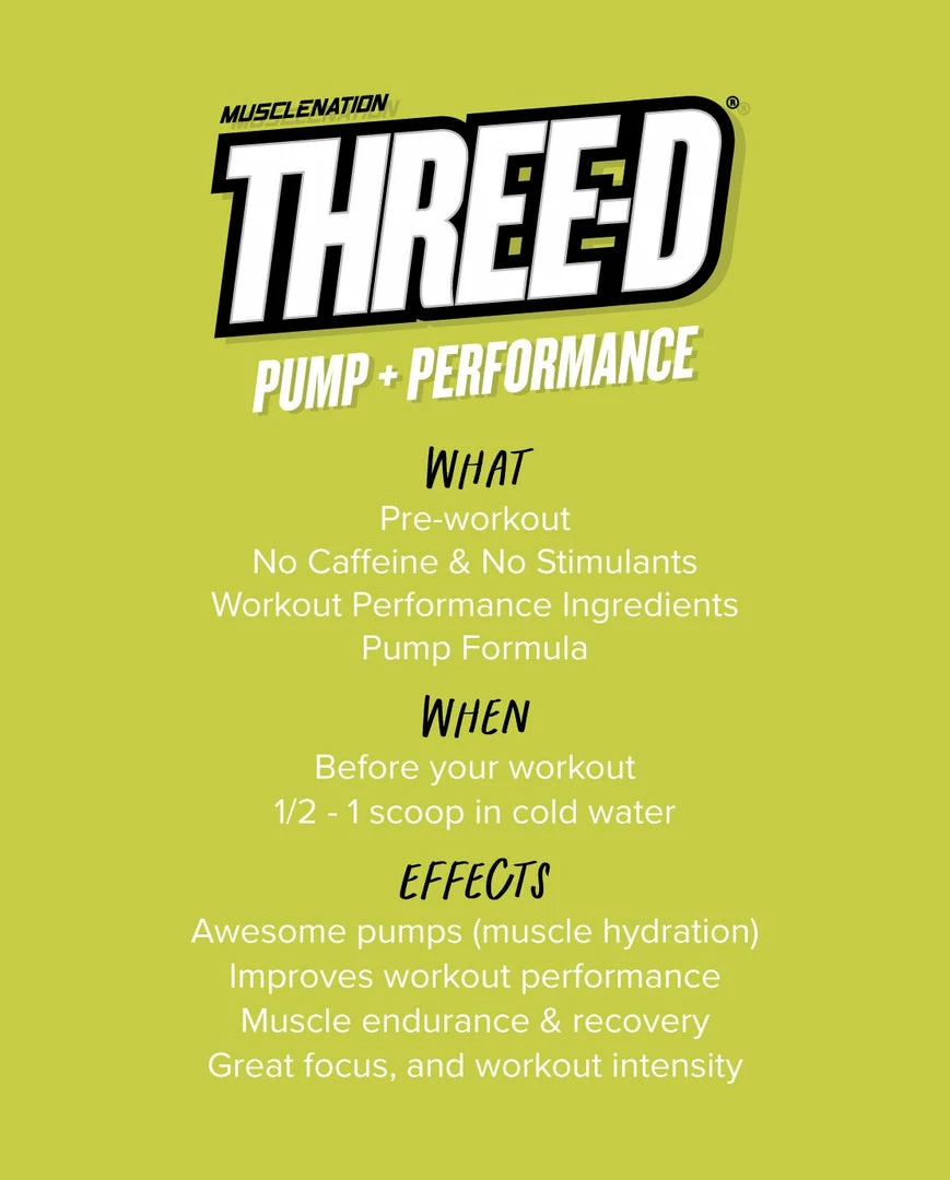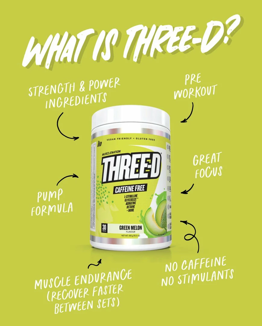Muscle Nation THREE D Pre Workout Pump Caffeine Free – Green Melon – 30 Serves