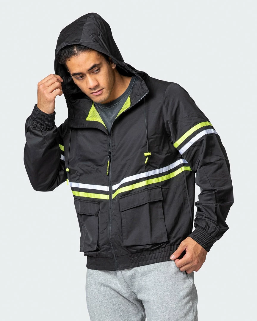 Finished with a pop of contrast taping in lime and white, along with an elasticated waistband and cuffs.