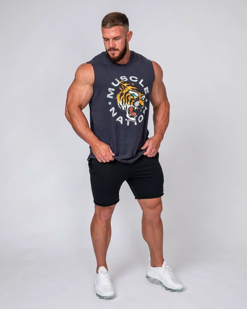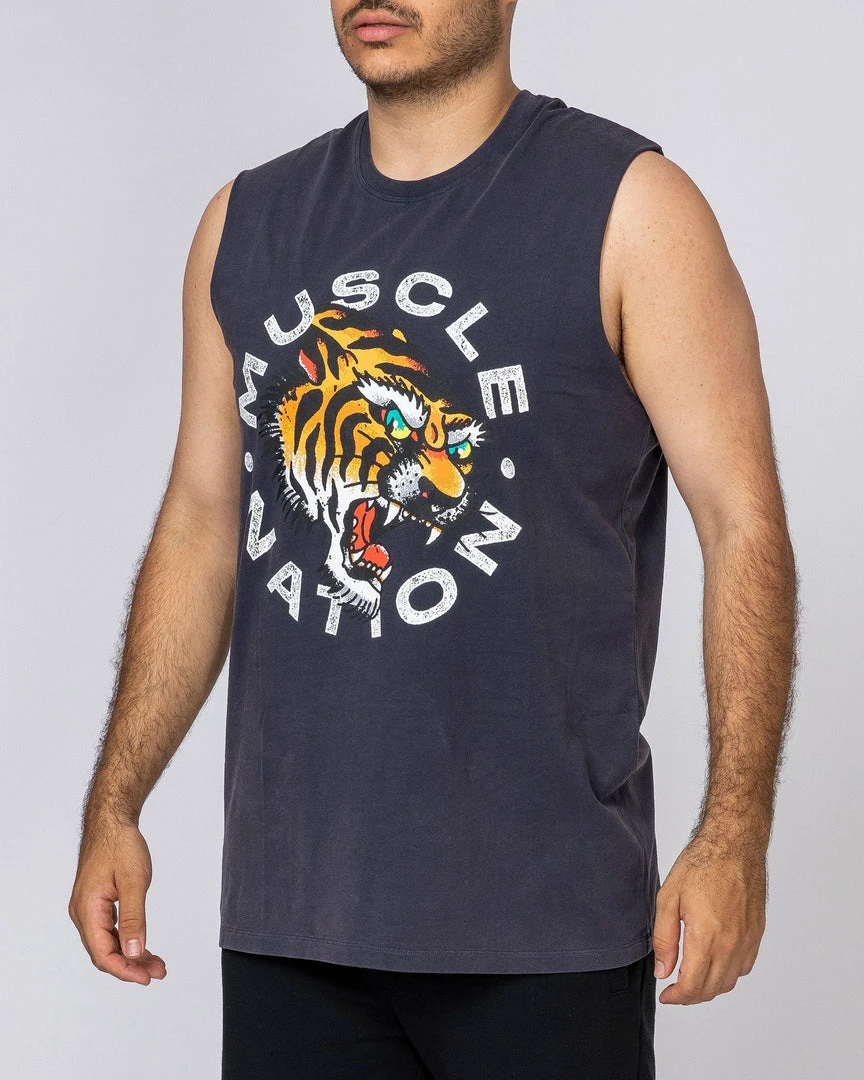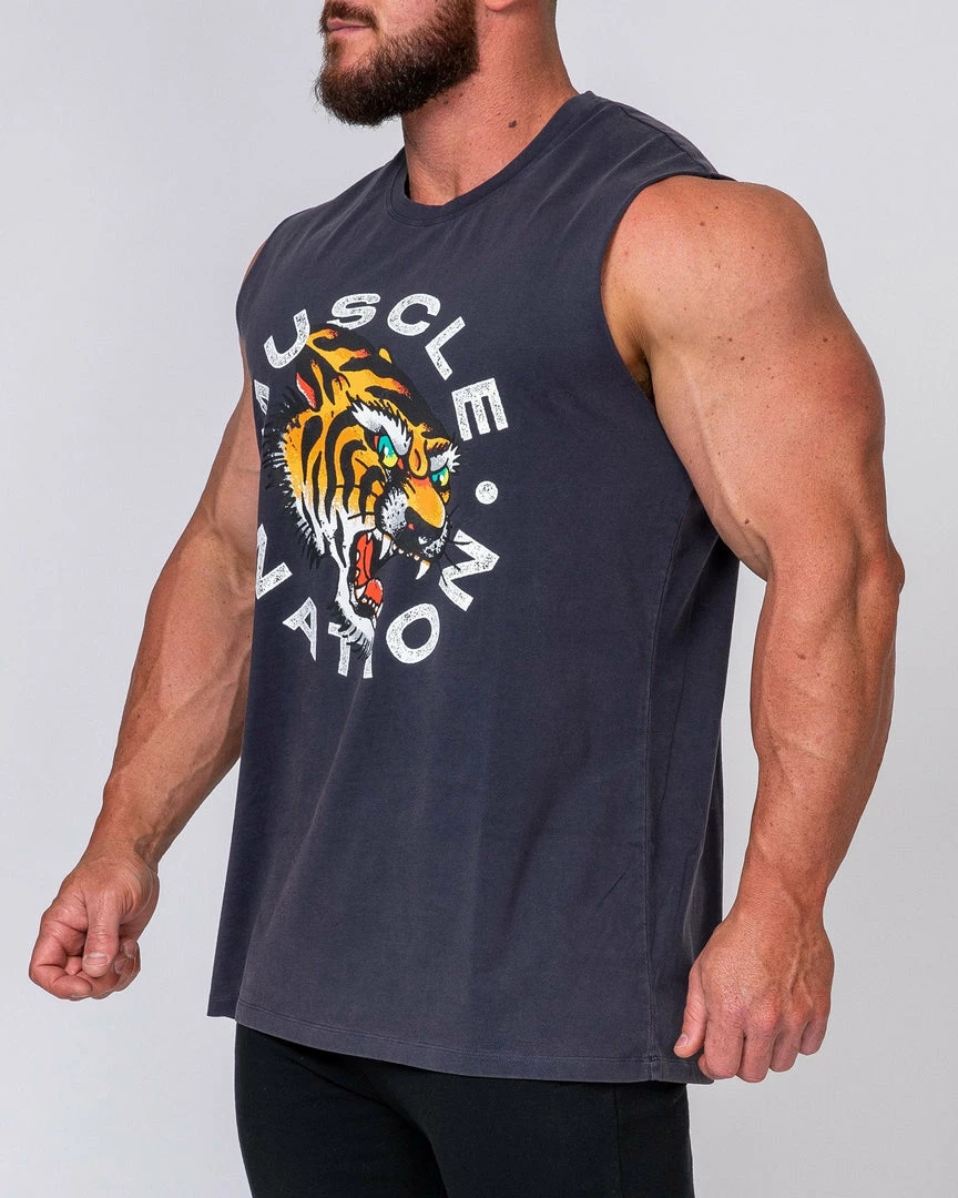 Featuring a bold tiger design and on-trend, raw cut arm holes – this tank certainly has a big personality.