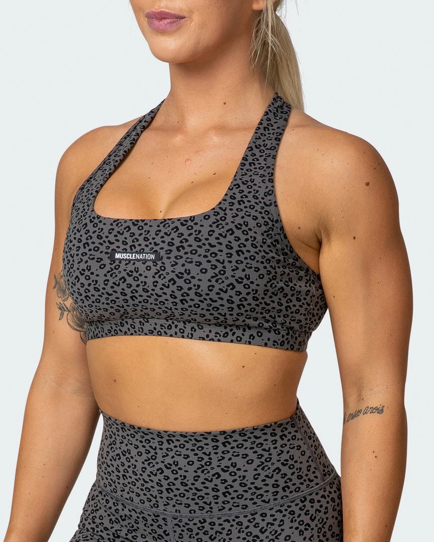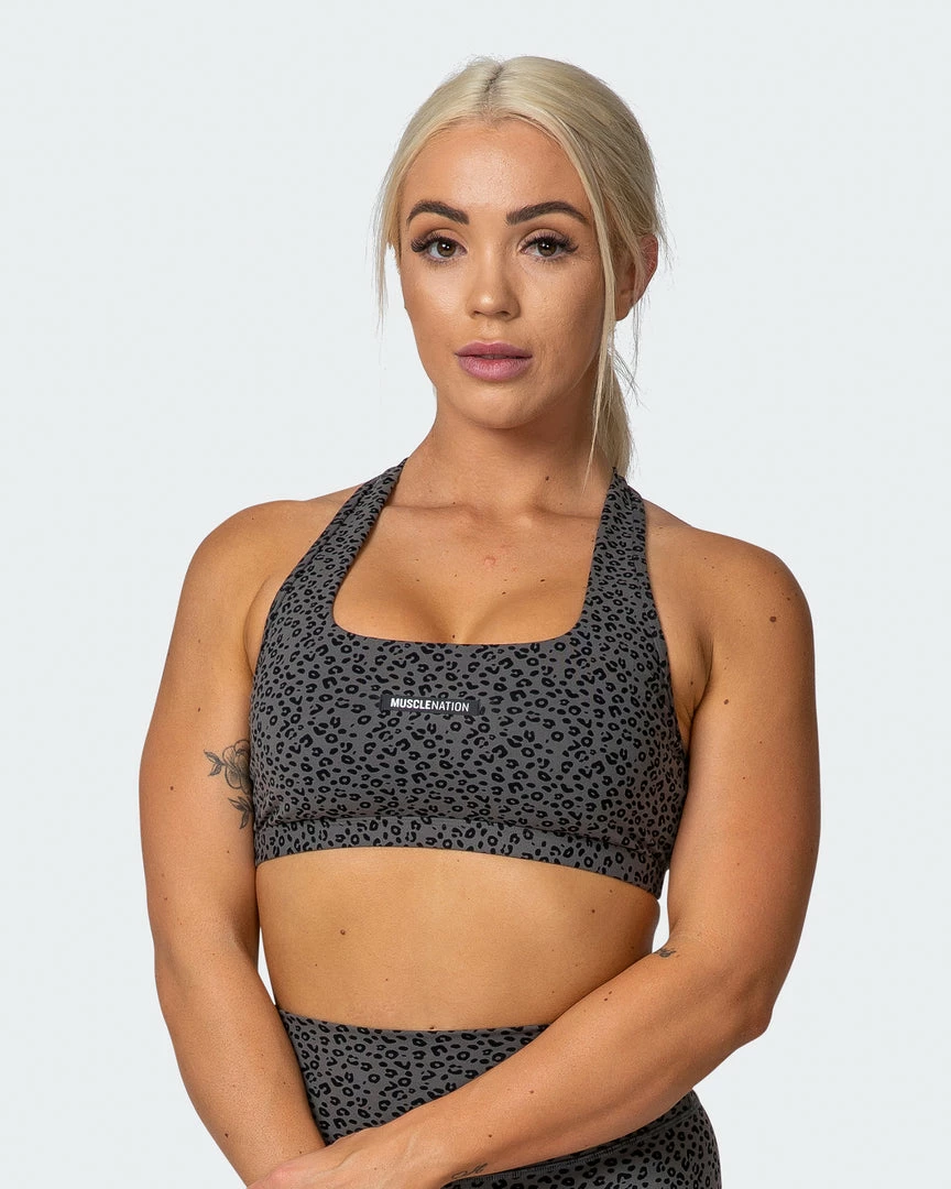 Muscle Nation Welcome To The Club Flex Bra – Monochrome Mini Cheetah Print