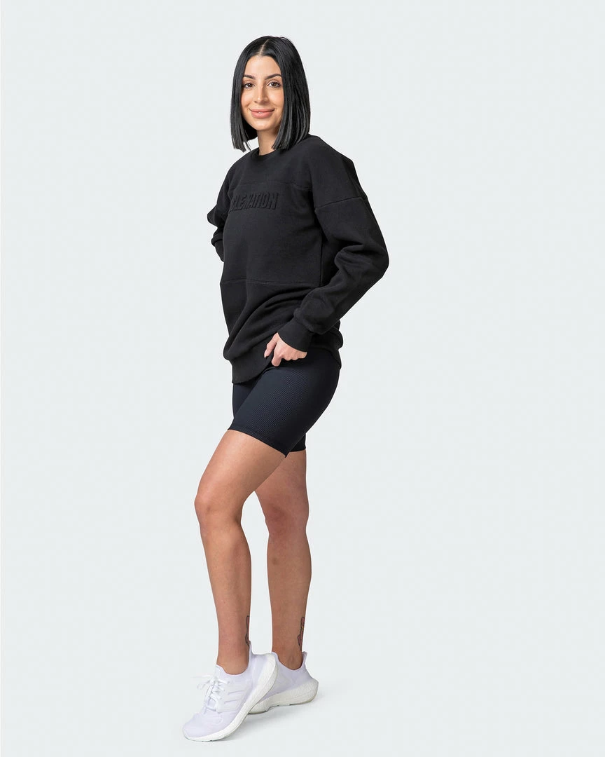 Key details include a stylish relaxed fit, ribbed cuffs, hem and neckline and flattering panel seams along the body and sleeves.