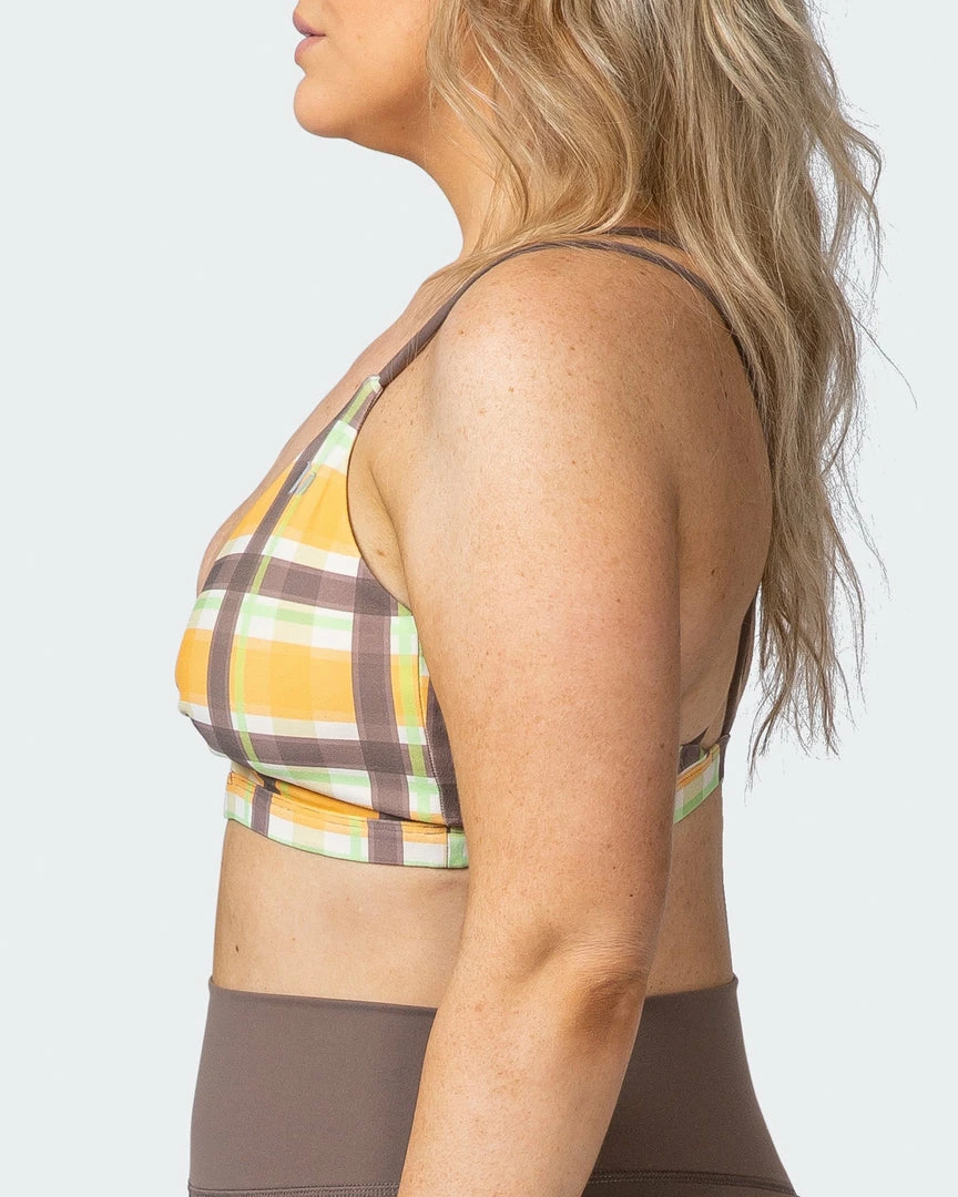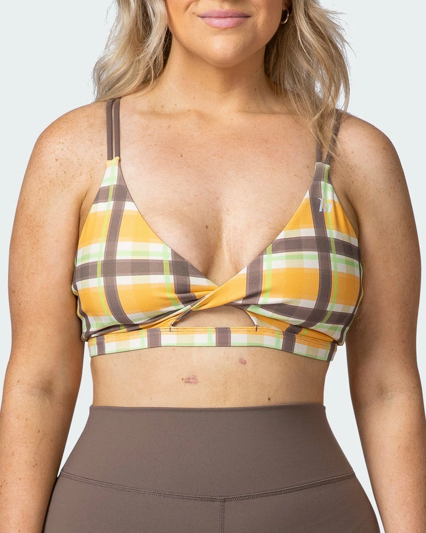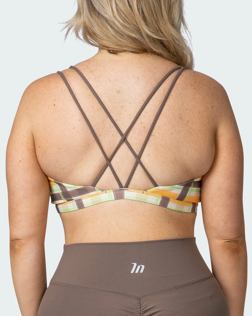 Featuring a twist front with keyhole design and contrast criss-cross straps, this bra has you covered!