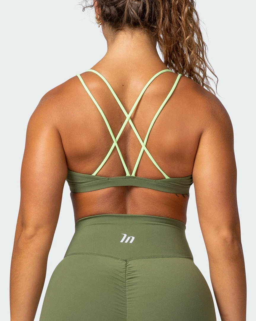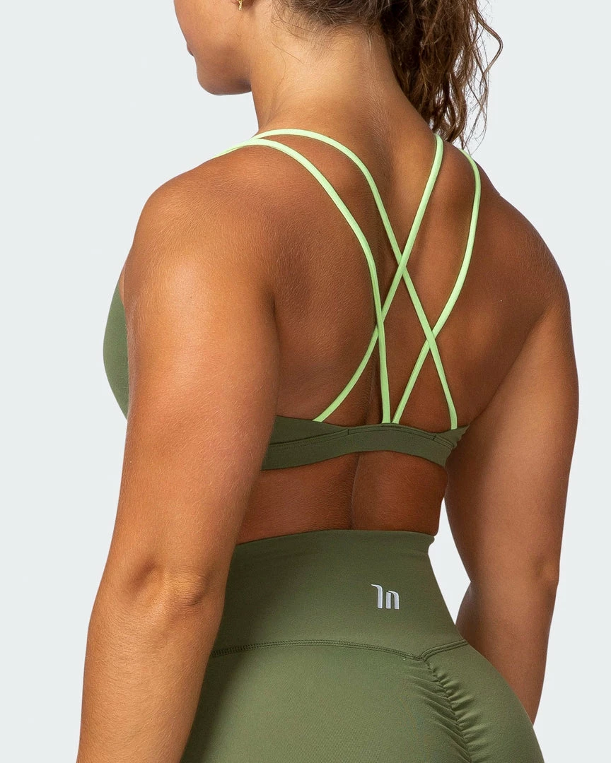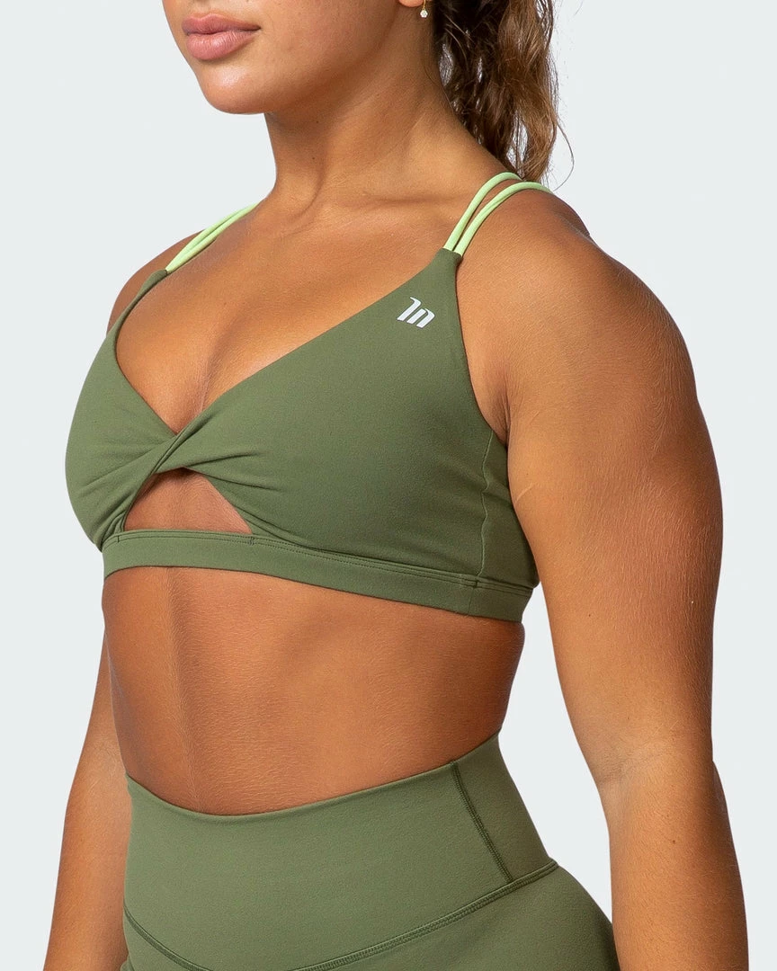 Featuring a twist front with keyhole design and contrast criss-cross straps, this bra has you covered!