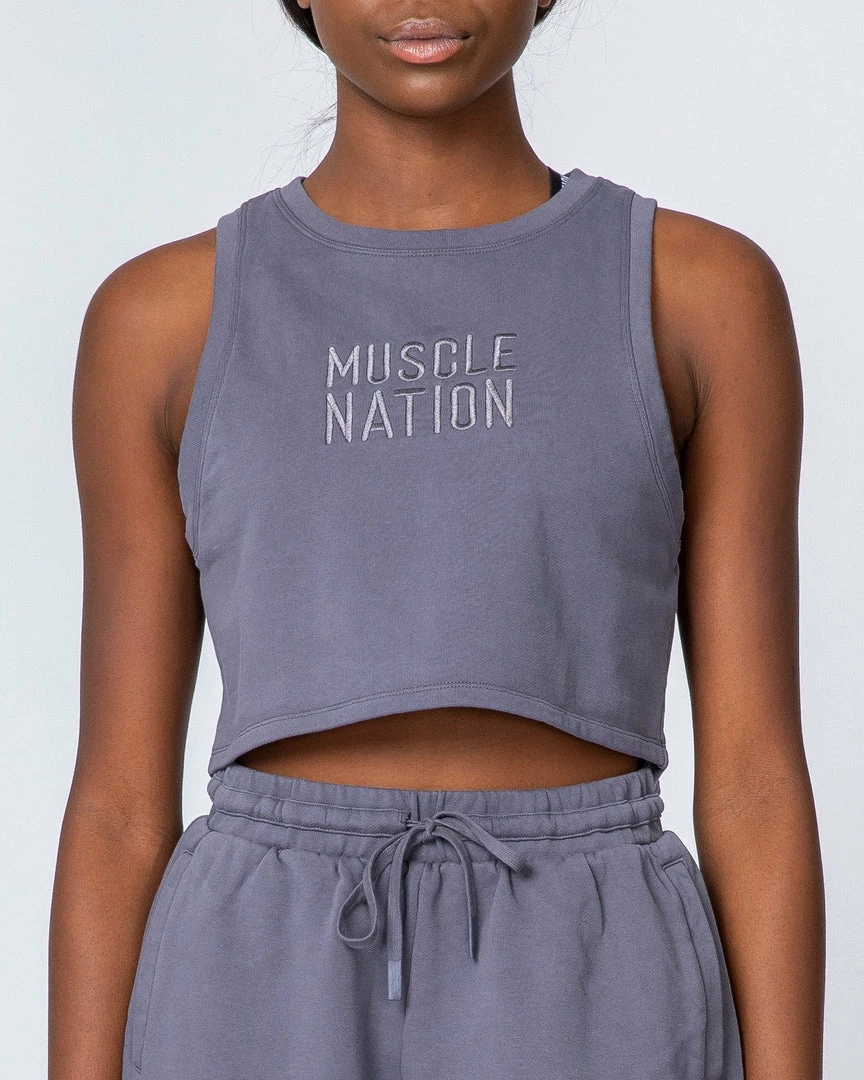Finished in a fashion-forward acid wash for a vintage look. Branded with a tonal Muscle Nation embroidered logo on the front. Â