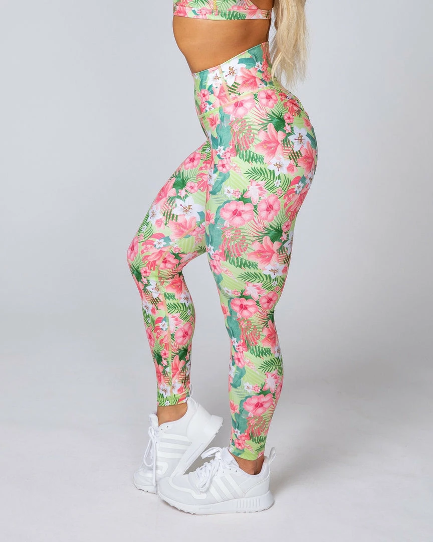 These HBxMN Sweetheart Ankle Length Leggings will take you to a tropical paradise.